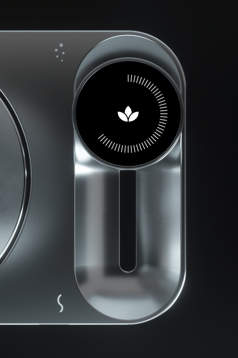 Lotus is a system of two digital controllers, through whose shifting and rotation it’s possible to manage water temperature, flow and effervescence.