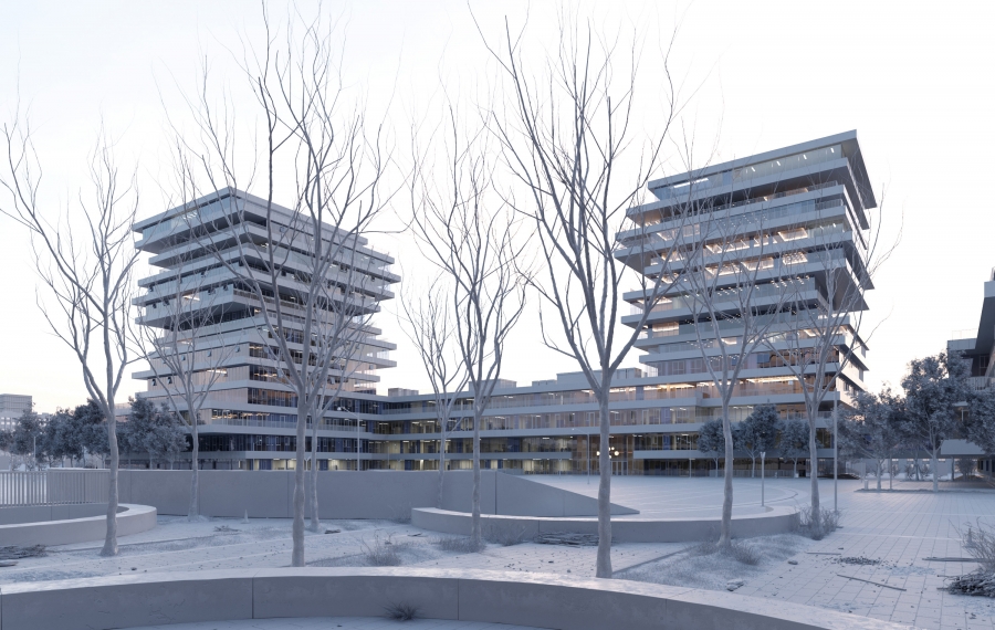 Our latest mission was to portrait the reborn of Century-old Hangzhou Normal University in this new campus that consists of more than a dozen colleges forming a rich puzzle. In the center of these puzzle a huge site hosts a core area complex, with several blocks and a fully open space for pedestrians. Everything is made with Cinema 4D and Corona (and a bit of Photoshop).