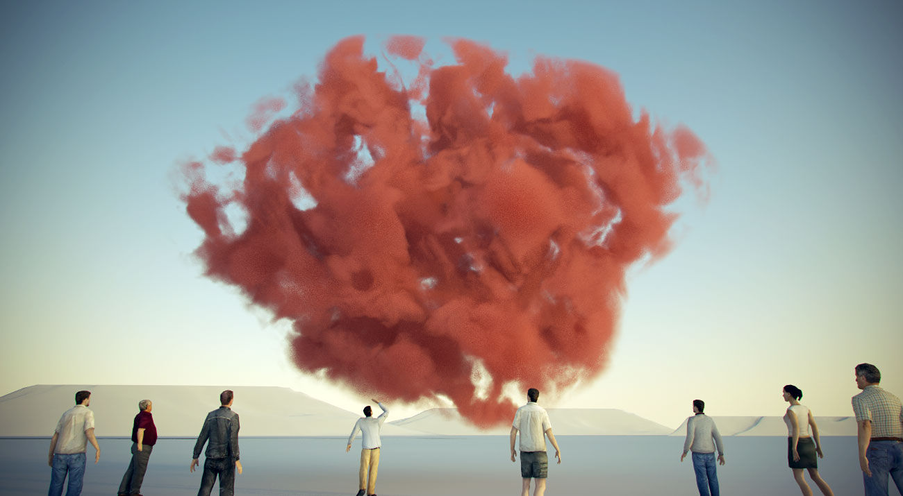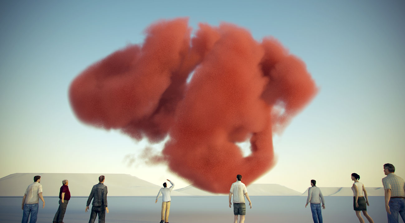 Nuvole volumetriche generate con Cinema 4D e V-Ray, con l'utilizzo dell'Environment Fog.