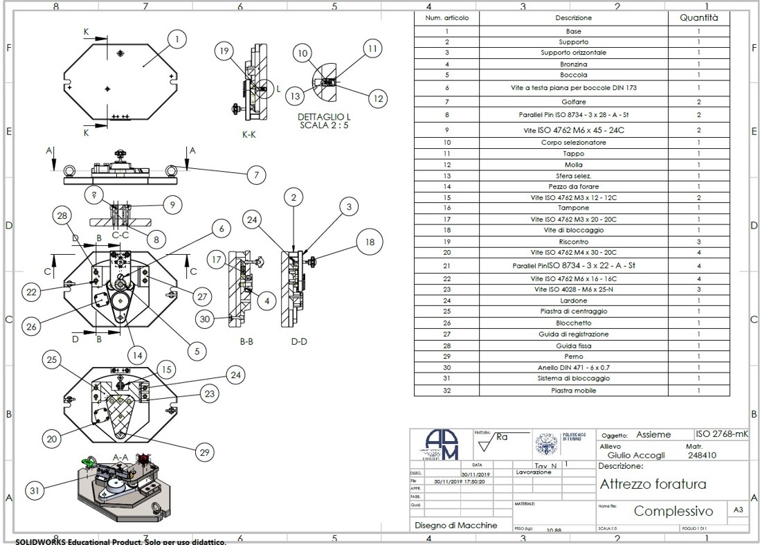 Progettazione su software Solidworks di tutti i componenti necessari per assemblare una stazione di foratura verticale.