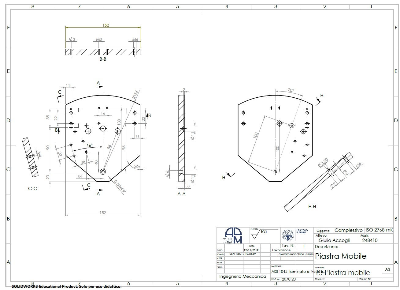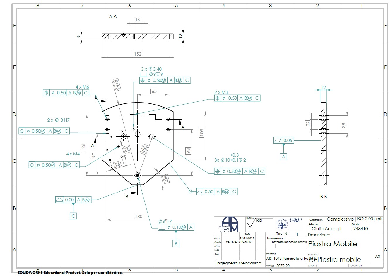 Nato a Gallipoli (LE) il 09/10/1998, attualmente studente di Laurea Magistrale in Ingegneria Meccanica (LM-33) al Politecnico di Torino. La presente è una raccolta di alcuni dei progetti didattici ed elaborati realizzati durante l'intero percorso di studi ed attività extra-curriculari.