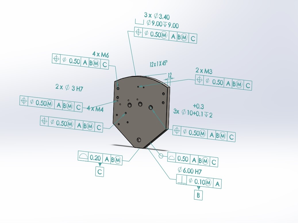 Ogni componente è provvisto di quotatura tecnologica e GD&T, raffigurate anche sulla messa in tavola associata.