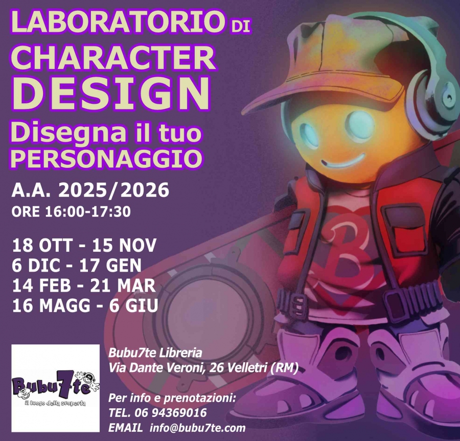 Il Laboratorio di Character Design affronta gli argomenti dello studio del personaggio (per il fumetto, l’animazione e i videogame), dalle basi del disegno all’uso delle tecniche, utili per realizzare dei personaggi originali.
